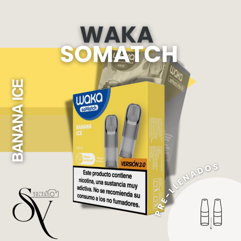 El WAKA soMatch Mini Banana Ice es perfecto para quienes desean una experiencia de vapeo dulce y refrescante con cada calada.