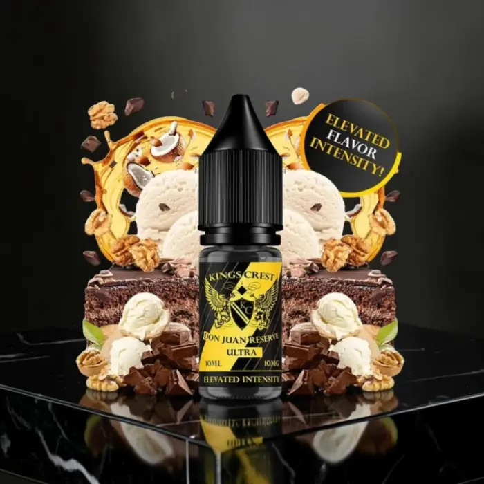 Descubre la sal de nicotina premium Don Juan Reserve Ultra de Kings Crest, diseñada para aquellos que buscan una experiencia gourmet en vapeo. Este producto, elaborado con gran cuidado, pertenece a una gama que resalta por su carácter sofisticado y un sabor inconfundible, combinando la tradición del vapeo con propuestas innovadoras para los paladares más exigentes.