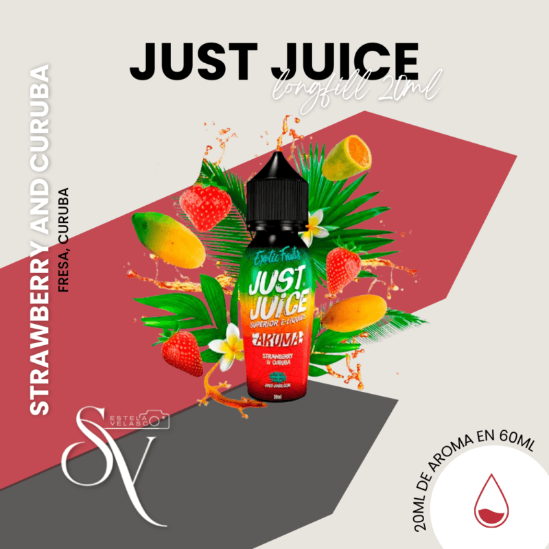 Características destacadas de este Aroma Strawberry and curuba 20ml Just Juice longfill 🍓🧪