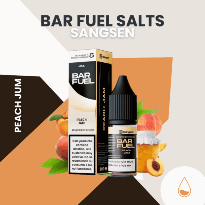 Peach Jum de Bar Fuel Salts (Hangsen) es una opción exquisita para quienes buscan una experiencia de vapeo entensa, suave y con un golpe de garganta equilibrado. Su mezcla está diseñada para mantener la fidelidad al sabor en cada calada, perfecta tanto para dispositivos pod como para vapers más experimentados.