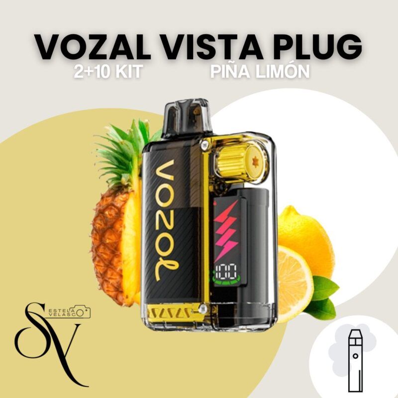 Descubre el sabor Piña limon – 2+10KIT Vozal Vista Plug en el formato 2+10KIT o recarga compatible con Vozal Vista Plug. Esta combinación incluye un cartucho de 2 ml y una botella de 10 ml de líquido con sales de nicotina, diseñado para ofrecer una experiencia duradera y deliciosa.