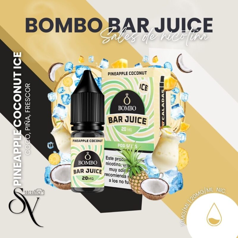 Las Sales de nicotina bar juice by bombo pineapple coconut ice te transportan directo a una playa tropical. Su sabor combina la dulzura jugosa de la piña con la suavidad cremosa del coco, todo coronado con un efecto Ice fresco y envolvente. Esta mezcla tropical tipo bar juice es ideal para quienes buscan una experiencia exótica, refrescante y efectiva para dejar el cigarro tradicional.