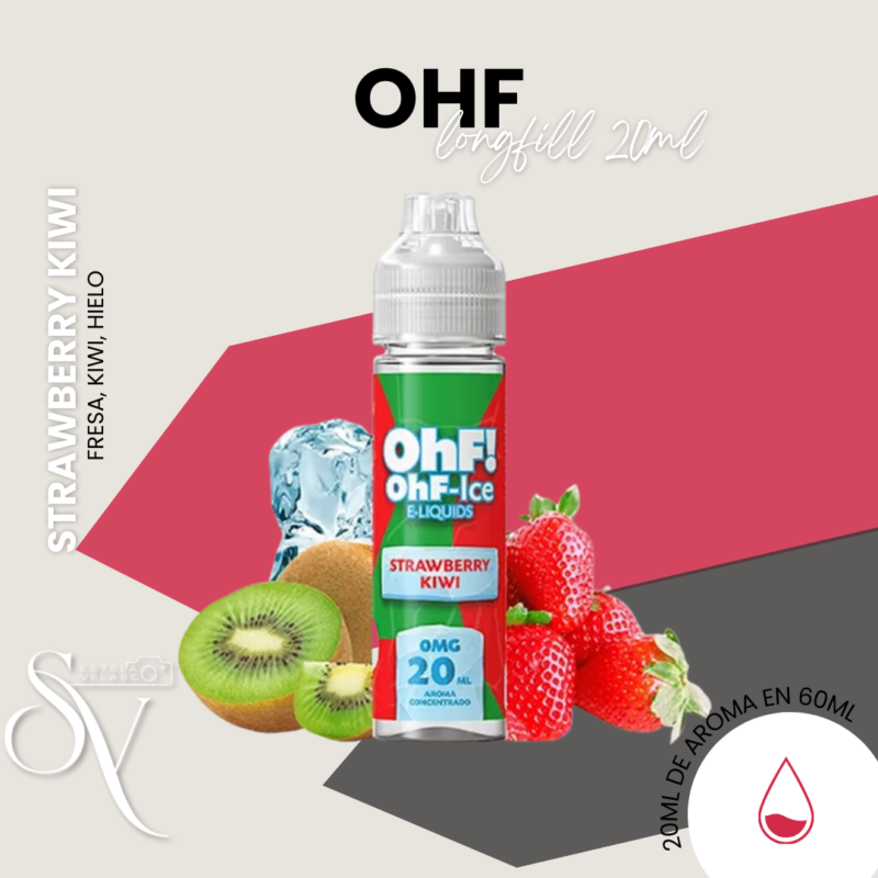 Strawberry Kiwi OhF! Longfill 20ml 🍓🥝 Una mezcla irresistible de fresa dulce con el toque ácido del kiwi. Equilibrio frutal perfecto.