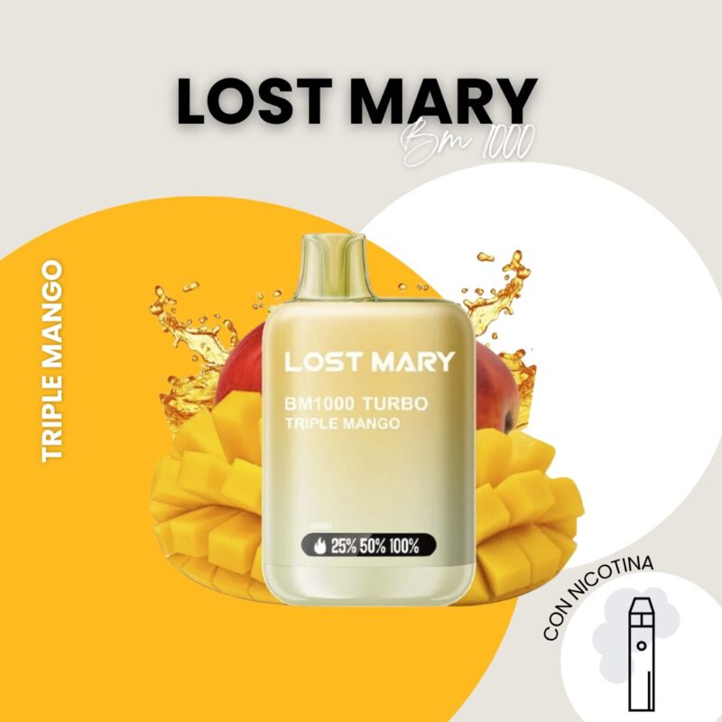 El Triple Mango – Lost Mary BM1000 Turbo es un dispositivo desechable diseñado para ofrecer una experiencia de vapeo potente, consistente y con un sabor entenso desde la primera hasta la última calada.